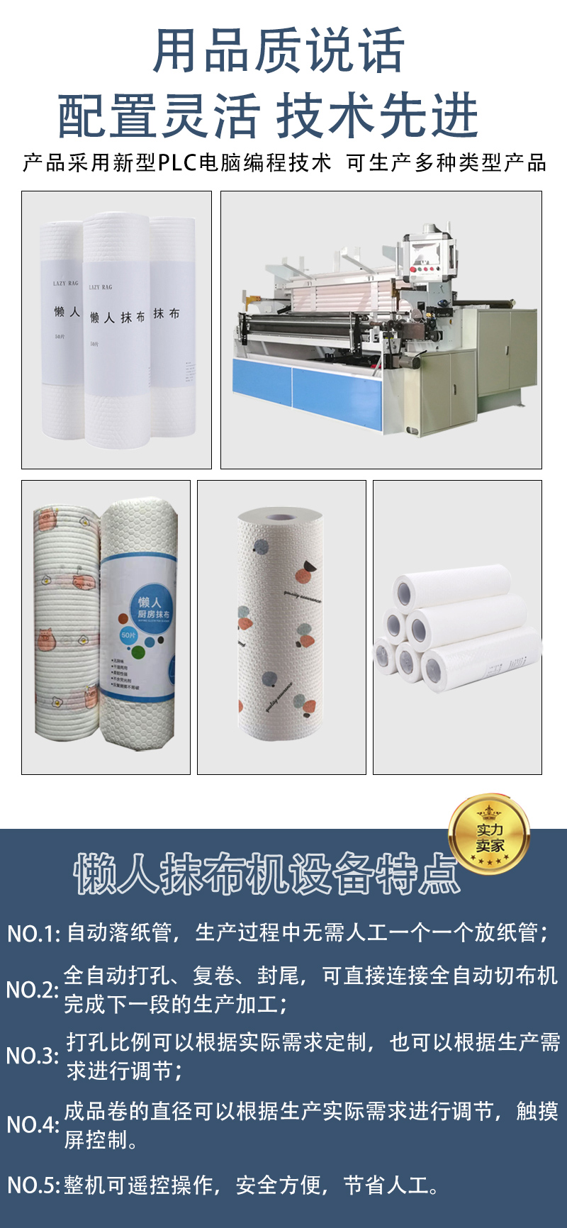 懶人抹布機,自動落紙管,全自動打孔,整機可遙控操作,安全方便,節省人工。